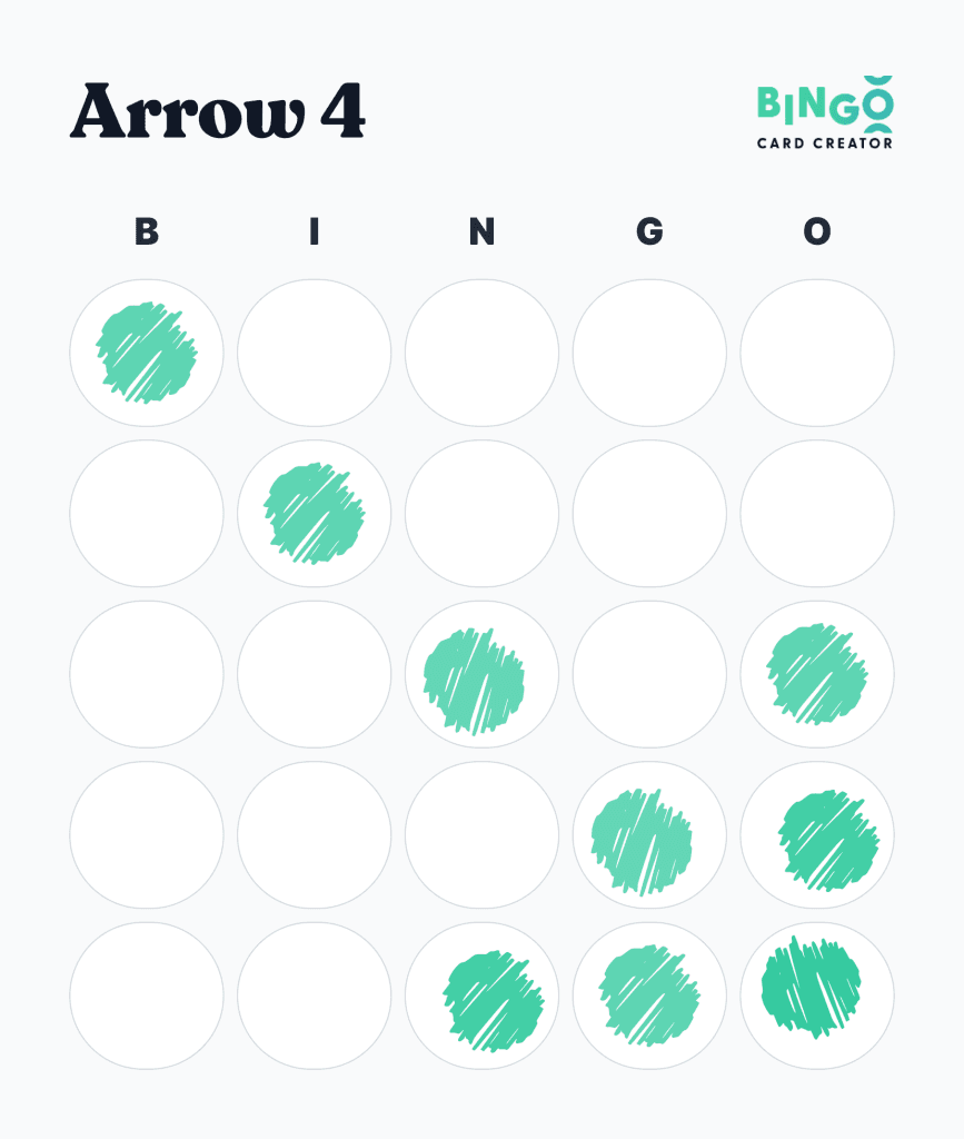 The "Arrow" pattern in bingo brings a dynamic twist to the game. Unique in its versatility, this pattern can be formed in any of the four corners of the bingo card. It's like having four mini-games in one, each corner offering a new direction for the arrow to point.