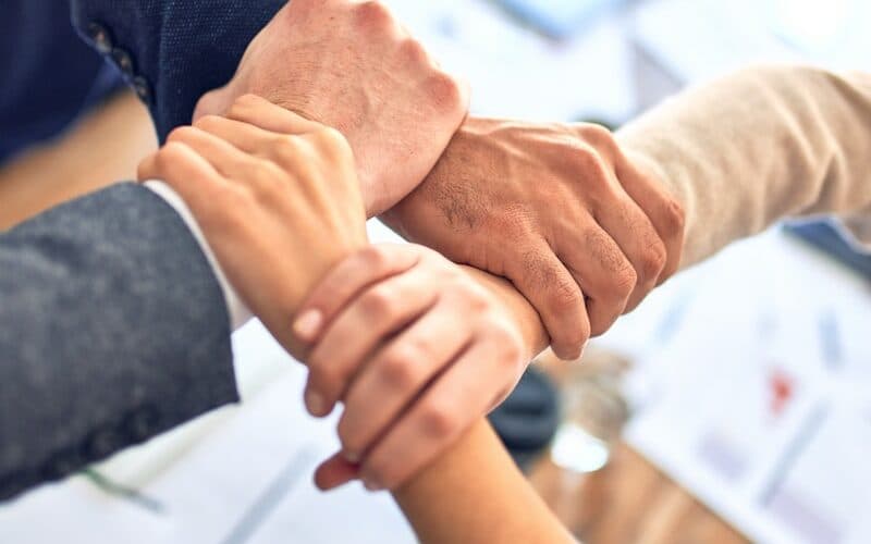 Everyone stands in a circle and holds hands with two people across from them. The goal is to untangle the knot without letting go of each other’s hands.
